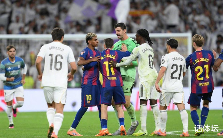 皇马主动将阵型回收,五后卫的站位防止巴萨的地面渗透。第89分钟,亚马尔送出精准传中,孔德停球过大,浪费扳平的绝佳机会。补时阶段佩德里又吃到了第二张黄牌,两黄变一红被罚下!并且随后双方替补席爆发冲突。最终全场比赛结束,巴萨遗憾不敌皇马。